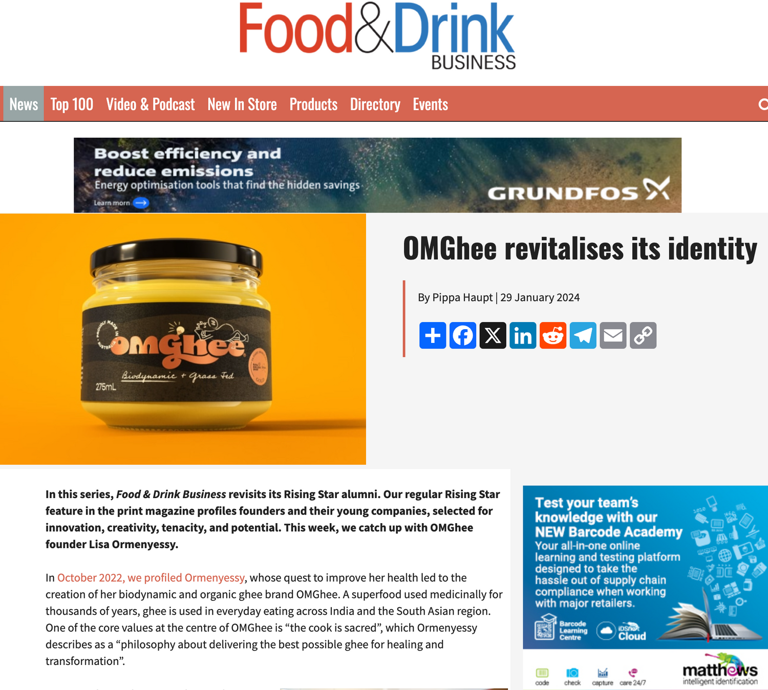 自《食品与饮料商业》上次采访 OMGhee 以来,这家南澳大利亚企业取得了一些里程碑式的成就,在 2023 年 SA 乳业奖上获得了两枚金牌,并在 2023 年 SA 新兴企业、新产品和企业卓越奖中入围决赛。该公司最近还在其标签上添加了犹太洁食和清真认证——这将极大地帮助其未来的出口计划。