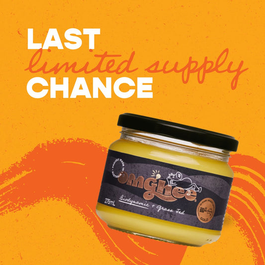 This Australian Biodynamic ghee made from the butter of grassfed cows is one of the purest ghee’s available in Australia today. Not 'just clarified butter' OMGhee is made by simmering the butter slowly for seven hours so we can guarantee that its fatty acid profile has transformed into a healthy fat, (like an avocado, or coconut oil).